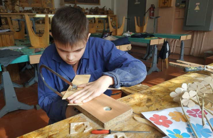 На заняттях дитячого об’єднання створені умови для творчого розвитку дітей засобами декоративно-ужиткового мистецтва, зокрема, художньої обробки деревини.