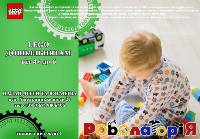 В основі занять у студії Lego Kids для дошкільнят лежить принцип навчання через гру. Навчання в процесі гри сприяють розвитку в допитливих малюків творчого мислення, фантазії, конструкторських навичок, дрібної моторики рук та закладають основи критичного мислення. Конструювання допомагає втілювати в життя свої задуми, будувати та фантазувати, захоплено працювати і бачити кінцевий результат. Заняття з Lego розвивають у дітей посидючість, терпіння, вміння концентруватися та співпрацювати з партнером.Усі заняття в студії розроблені так, щоб надихати та навчати малих конструкторів корисно і весело організовувати своє дозвілля.