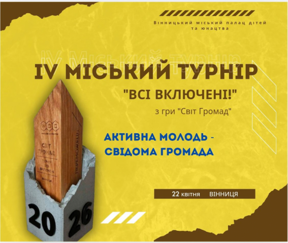 АНОНС! Фінал IV міського турніру "Всі включені" з гри "Світ громад" відбудеться 22 квітня 2026 року!