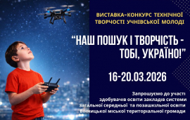 АНОНС! Запрошуємо здобувачів освіти взяти участь у виставці-конкурсі технічної творчості учнівської молоді «Наш пошук і творчість – тобі, Україно!»