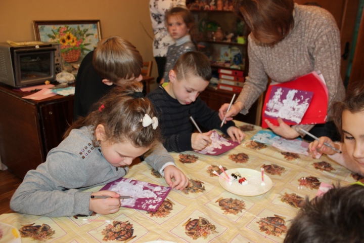 Усі діти полюбляють малювати. 29 січня вихованці гуртків КЗ «Вінницький міський палац дітей та юнацтва імені Лялі Ратушної» знайомилися з надзвичайно цікавими та креативними техніками малювання. Керівник гуртка образотворчого мистецтва «Колорит» Зінченко Ю.В. презентувала техніку малювання вузіллям, керівник гуртка «Юний художник» Лісіцина Л.П. знайомила з технікою ниткографії, керівник гуртка декоративного мистецтва Гикава О.Л. вчила створювати малюнки за допомогою поролону, вушних паличок та інших матеріалів, а керівник гуртка образотворчого мистецтва Лазоренко Н.В. демонструвала техніку тампонування.