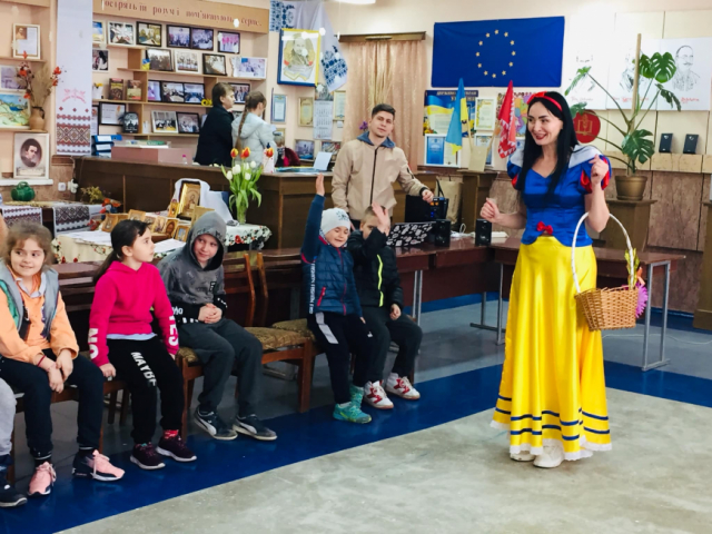 Тому для того щоб трішки відволікти їх від усіх подій навколо, працівники організаційно-масового відділу нашого Палацу з ними граються, танцюють та співають