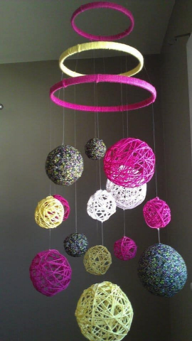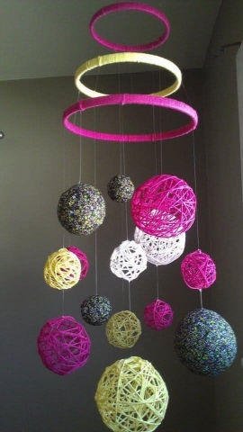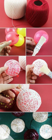 Щоб створити будь-який із наступних предметів, вам не потрібно бігти до магазину та купувати спеціальні матеріали та інструменти. Все, що вам потрібно може знайтися у вас вдома. Для основи, шаблону, використовуйте повітряні кульки, картонові заготовки, надувні м’ячі тощо. А далі беремо нитки, клей ПВА, трішки води і… мотаємо.