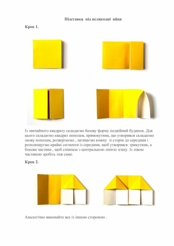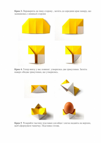 Сьогодні педагог гуртка "Орігамі" пропонує спробувати виготовити декоративну підставку під великодні яйця. Зробити її самому в техніці орігамі дуже просто, головне все складати по схемі.