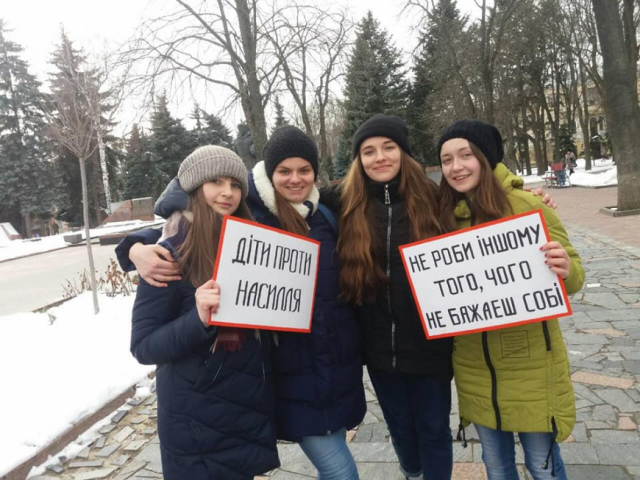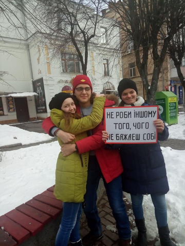 "Ми проти насилля - Ми за Добро!"...саме під таким гаслом пройшла акція-флешмоб, клубу шкільних омбудсменів "Бумеранг". Діти пройшлися по центру міста і дарували тепло через свої обійми,усім хто проходив поруч, цим самим закликаючи частіше обійматися і посміхатися. Вінничани позитивно реагували і дякували за те,що діти показують усім приклад,як потрібно жити в злагоді і мирі,даруючи тепло своїх сердець!!!!