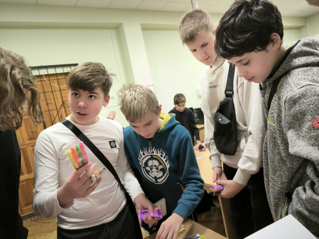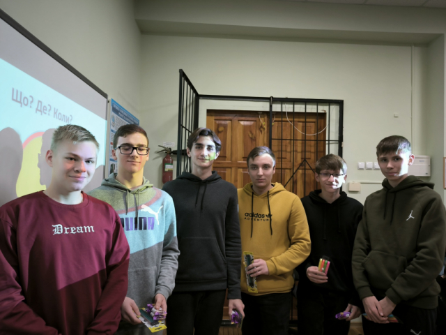 Гуртківці сформували 4 команди гравців і змагалися між собою в інтелектуальних здібностях. Команди шукали відповіді на різноманітні питання: який сигнал у радіолюбителів складається з двох цифр, що означають "тисну твою руку", намагалися закінчити фразу "совість, як хом'як - або спить, або...", яку фразу з двох слів у першому смс в грудні 1992 року надіслав інженер компанії Vodafone працівникам, намагалися перекласти на українську мову слово "кьотсем", якщо на мові хантів "кьот" - серце, а "сем" - рука, та ще багато цікавих запитань, на які юні інтелектуали таки знаходили відповіді. Це була гра інтелекту та таланту!