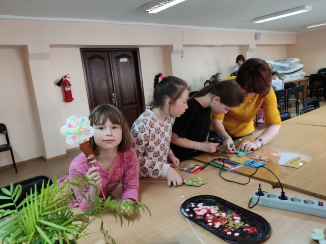 Педагогами Бєлан Іриною Михайлівною, Калінцевою Ольгою Володимирівною та Мохар Іриною Анатоліївною для діток переселенців, які вже два місяці мешкають у гуртожитку медичного університету були проведені майстер-класи