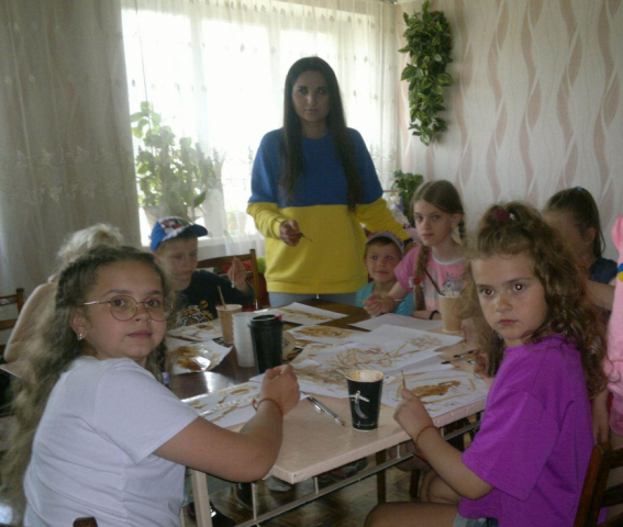 Саме тому керівник гуртка "Art Side" Медяна С. В. на базі Центру професійно-технічної освіти №1 м. Вінниці провела для діток з тимчасово окупованих територій майстер-клас з малювання кавою "Краєвиди рідного краю". Цей майстер-клас став для дітей-переселенців справжнім подарунком до Дня захисту дітей.