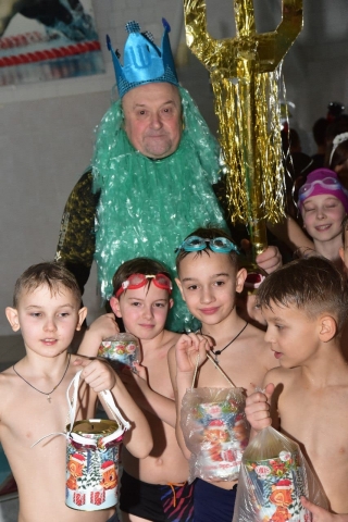 Яскраве новорічне театралізоване свято "День Нептуна" провели для наймолодших плавців керівники гуртків плавання.
