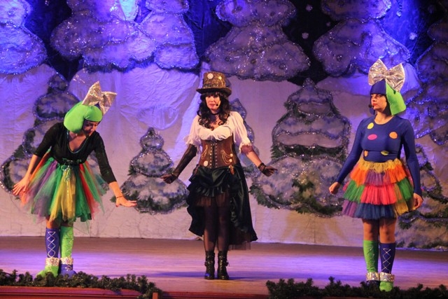 Під час театралізованого дійства діти поринали у незвичайний світ новорічних пригод та чарівних перетворень разом із улюбленими персонажами: Володаркою Часу, годинниковими мастаками Тіком і Таком, Ескімоскою, Білосніжкою, Маківкою, Машею, левом Алексом та місіс Сантою. Прикрасою новорічної казки стали виступи творчих колективів Палацу: Народного художнього колективу спортивного бального танцю «Грація» (худ. кер. Мацюк О.М.), студії сучасного та вуличного танцю «ЛаМар» (кер. Колесник М.В.), ансамблю сучасного естрадного танцю «Екстрим» (кер. Григор’єва Я.В.), ансамблю класичного танцю «Фуете» (кер. Ільченко Ж.Б.), театру моди «Оксамит» (кер. Бєлан І.М.).