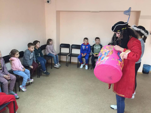 28 квітня до діток переселенців, які мешкають у 1 гуртожитку Вінницького медичного університету ім. М. Пирогова, завітали справжні пірати Карибського моря: капітан Джек Горобець та його вірний штурман Джейн. Таємнича карта скарбів, піратські вибробування, морські пригоди, запальні танці матросів - і це ще не весь список піратських забав. Адже на них, десь на далекому острові, очікувала скриня скарбів. Та юні матроси зуміли подолати всі перешкоди і віднайти захований скарб.
