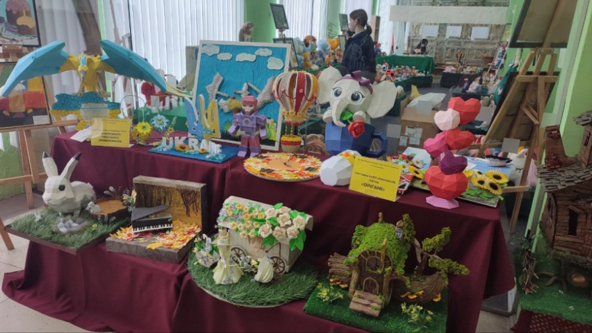 Перед початком свята порадували усіх присутніх яскраві виставки дитячих робіт гуртківців відділів науки і технічної творчості та декоративно-прикладного мистецтва.