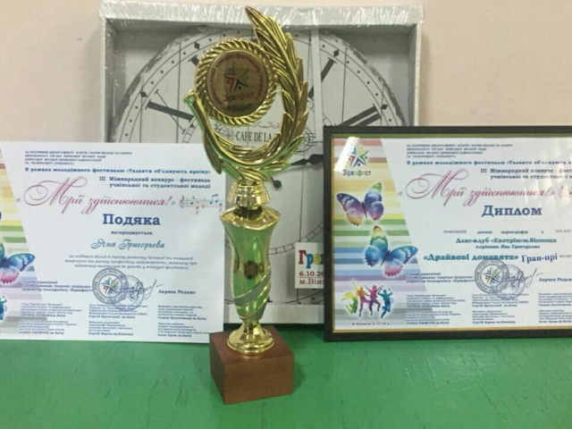 Ансамбль сучасного естрадного танцю «Данс клуб Екстрім», керівник Григор'єва Яна, 06.10.18 взяв участь у ІІІ Міжнародному конкурсі-фестивалі учнівської та студентської молоді "Мрії збуваються" ,на якому здобули високу нагороду ГРАН-ПРІ.