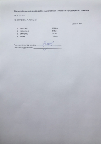 У басейні Вінницького міського палацу дітей та юнацтва 28-29 січня відбувся Відкритий зимовий чемпіонат Вінницької області з плавання серед дорослих та молоді  в якому взяли участь 50 юних спортсменів-плавців закладу, а також плавці КСК "Маяк" та міської дитячо-юнацької спортивної школи №3.