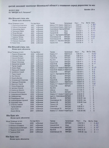 Відкритий зимовий чемпіонат Вінницької області з плавання серед дорослих та молоді