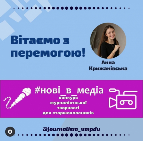 Вітаємо з перемогою у конкурсі "NEW IN MEDIA" Анну Крижанівську!