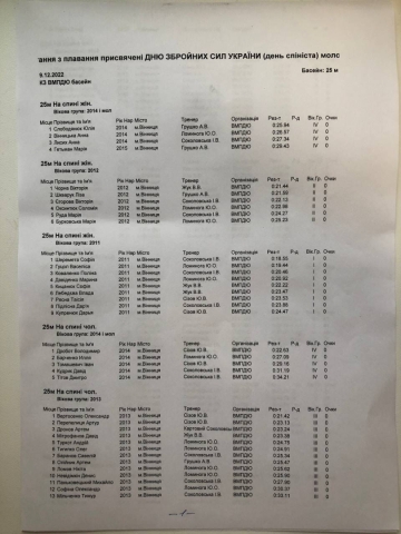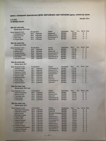 09 -10 грудня у басейні Вінницького міського палацу дітей та юнацтва відбулися внутрішні змагання з плавання, присвячені Дню Збройних сил України (день спиніста) у яких взяли участь 98 юних плавців.